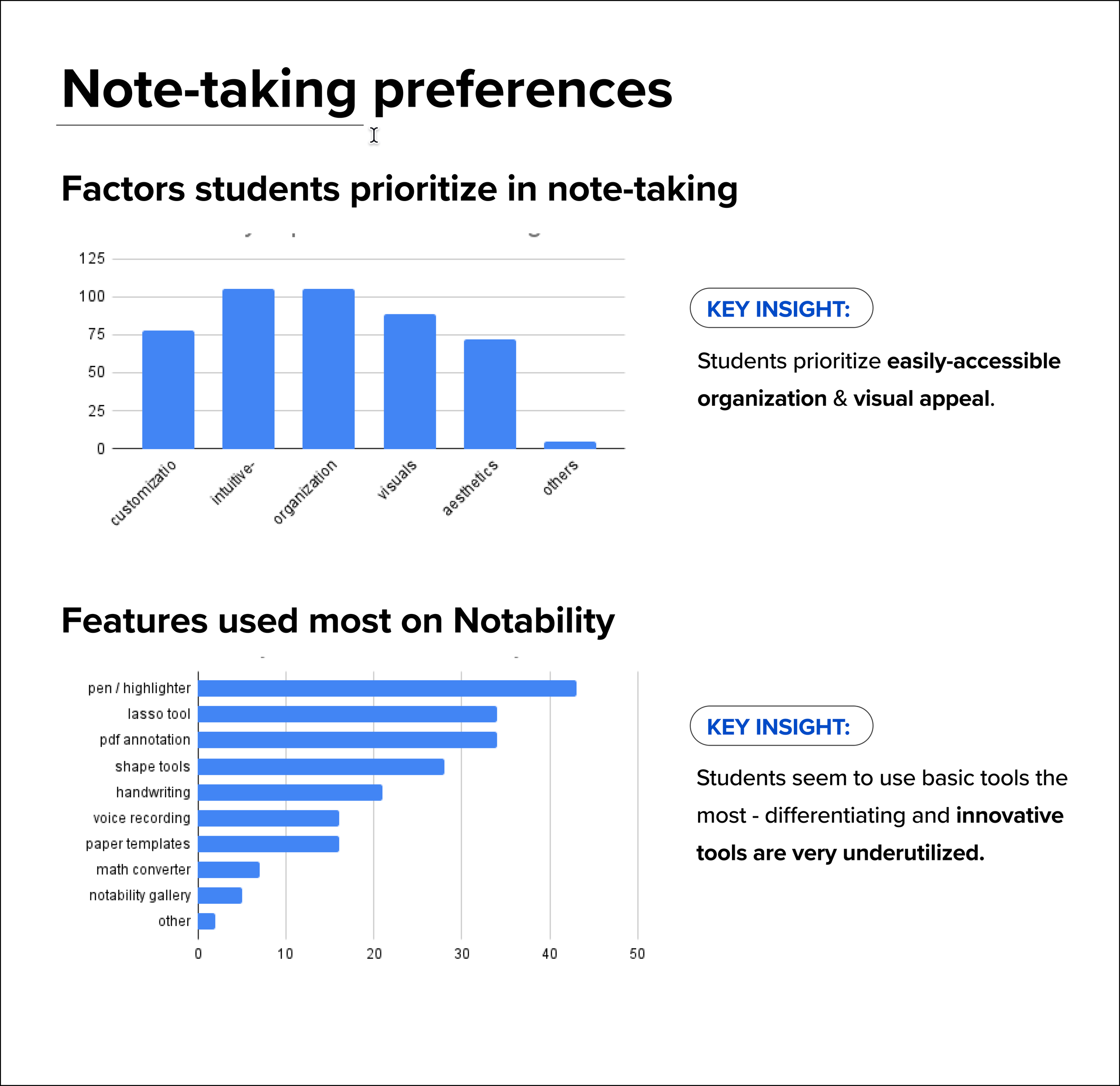 Drew connections and ideated 3 key recommendations for Notability moving forward