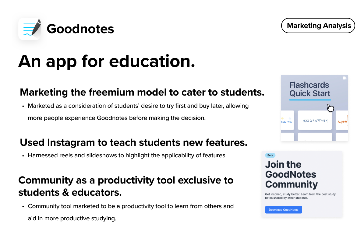 I found that Goodnotes differed from Notability mainly in the way they positioned themselves as an app for education compared to Notability’s marketing as an app with innovation.