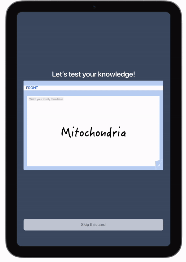 We thus envisioned Notability premium to be a holistic productivity app that could be helpful throughout the process of studying. For example, I prototyped flashcard revision feature where users could write key concepts on digital flashcards and revise them on Notability!