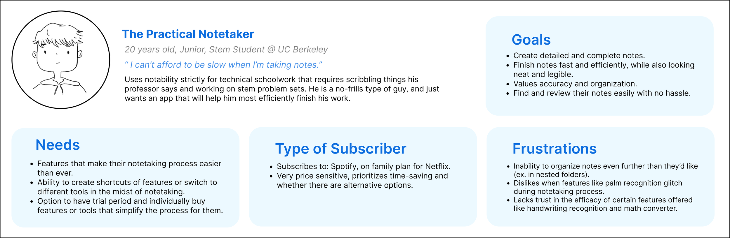 In collaboration with Notability, our team at Berkeley Innovation aimed to unearth the different user groups’ motivations, note-taking habits and pain-points and use this as the foundation to create a more incentivizing premium version for them.